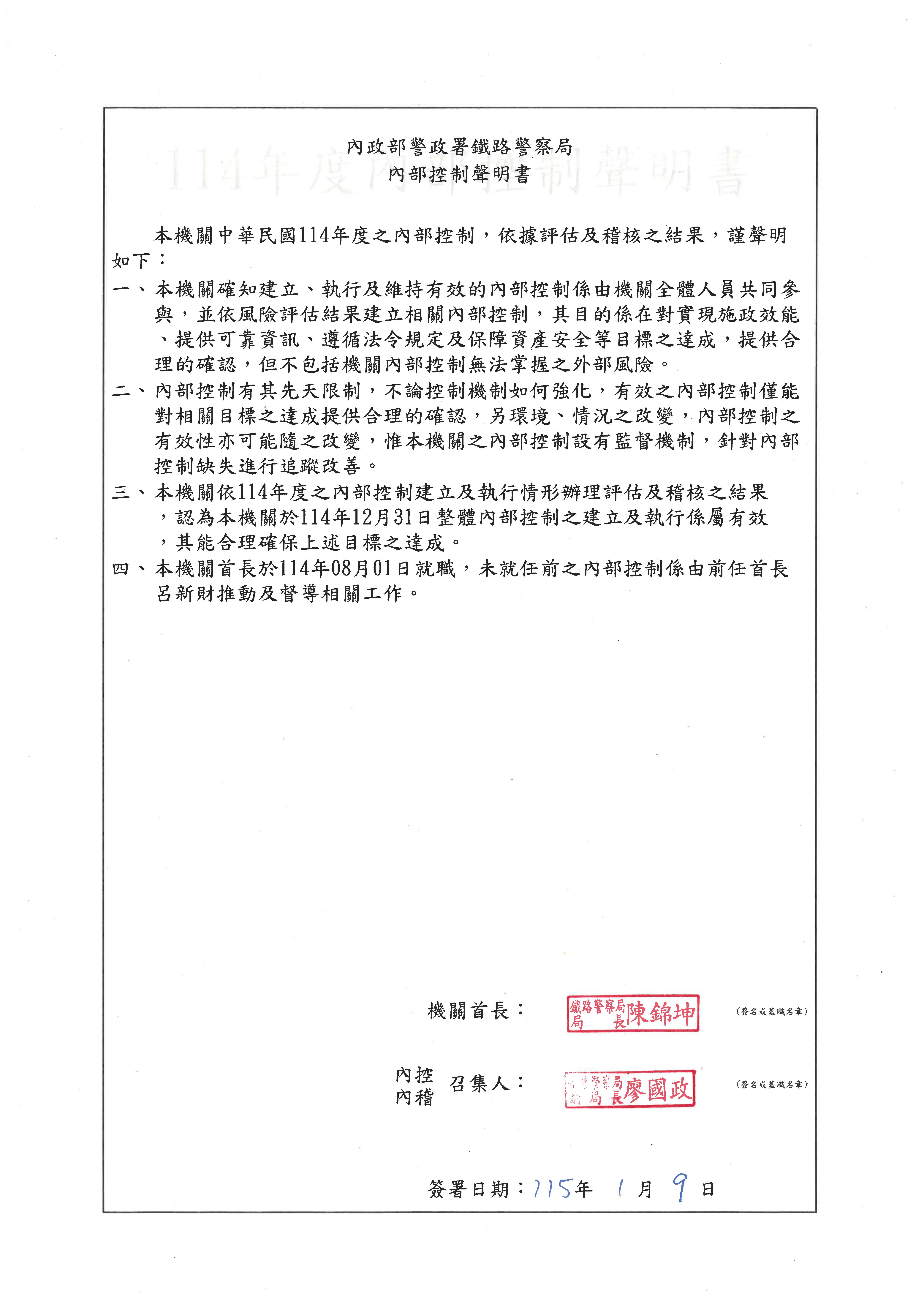 114年度內部控制聲明書